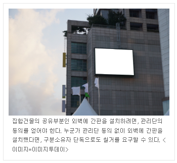 '집합건물 외벽'에 가게 간판을 설치하려는데